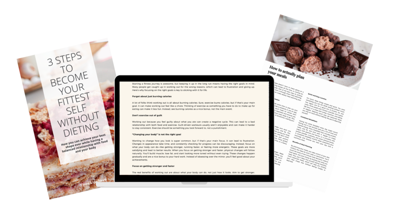 In this e-book you will find the basic information you NEED to know if you want to reach (or keep) your dream body without dieting, without hunger and without restricting food. You will also find 5 simple steps to help you make the switch from tracking calories and macros to intuitive eating and a more balanced relationship with food.